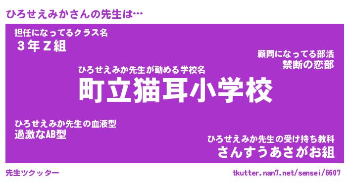 | ヒーロー風カッコイイあだ名 | 『スーパーヒロセエミカ』『天弓騎士ヒロ』 |