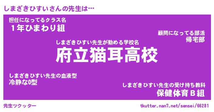 | ファンタジー風あだ名 | 『シマフェル』『ファントムシマス』 |
