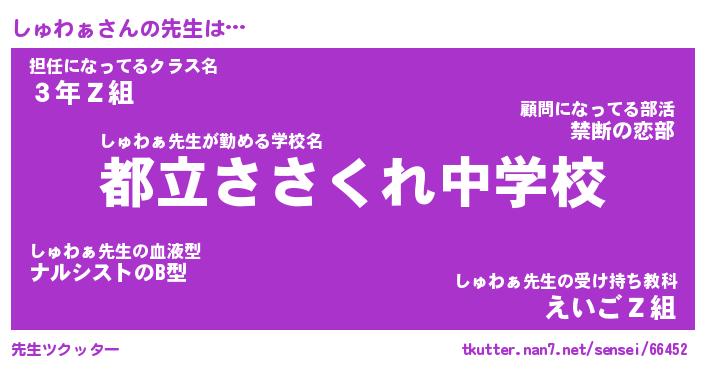 | 意味不明あだ名 | 『ペロリンしゅわぁ』『永久保存しゅわぁ』 |