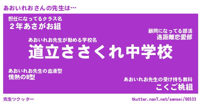 | 肩書あだ名 | 『あおいれお社長令嬢』『あおいれお担任』 |