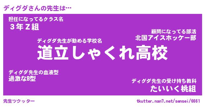 | ポケモン風あだ名 | 『ディチュウ』『ディグダネ』 |