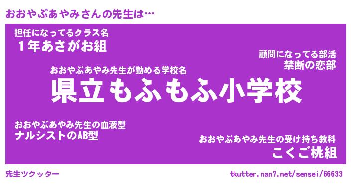 | 肩書あだ名 | 『おおやぶあやみ店長』 |
