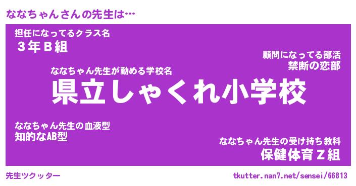 | ヘコむあだ名 | 『ななっふぃ~』『酢こんぶ』 |