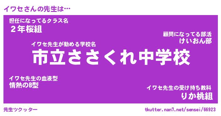 | 意味不明あだ名 | 『ペロリンイワセ』『イワセフォーエバー』 |