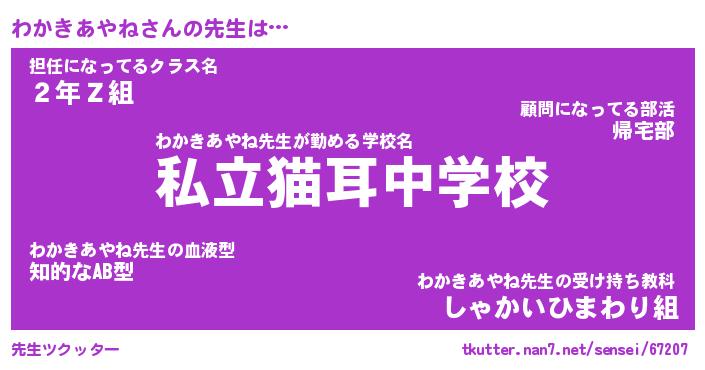 | ヒーロー風カッコイイあだ名 | 『スーパーワカキアヤネ』『銀牙騎士ワカ』 |
