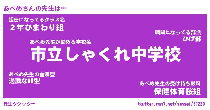 | ヒーロー風カッコイイあだ名 | 『スーパーアベメ』『ウルトラあべめマン』 |