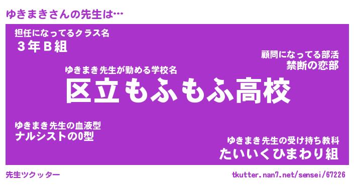| ファンタジー風あだ名 | 『ユキフェル』『エターナルユキマキー』 |