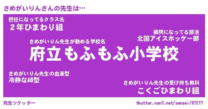 | 肩書あだ名 | 『さめがいりん店長』『さめがいりん班長』 |