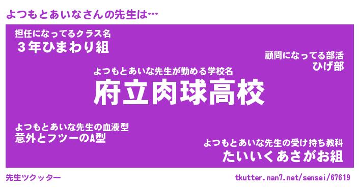 | ヘコむあだ名 | 『よつふぇ~』『レバニラ』『よつお』 |