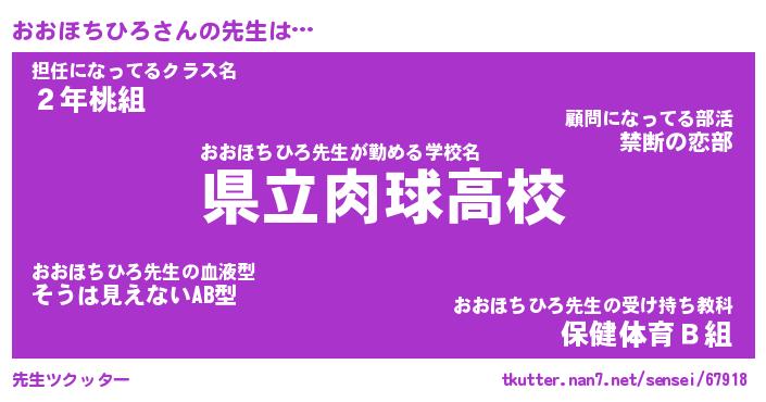 | 男性向けラノベタイトル風あだ名 | 『おおほちひろの憂鬱』 |