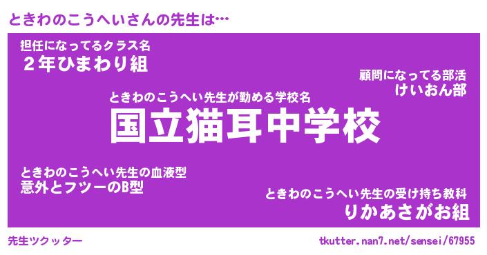 | ヘコむあだ名 | 『ときにー』『豆乳』『ときっ子』 |