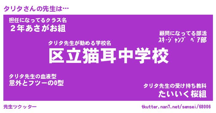 | ファンタジー風あだ名 | 『タリフェル』『エターナルタリター』 |
