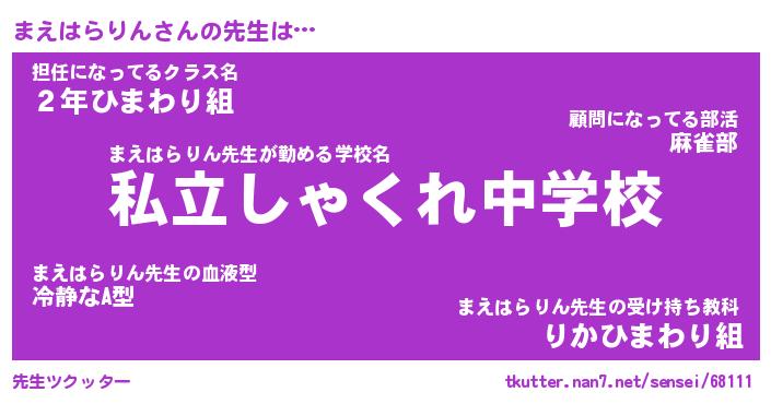 | 肩書あだ名 | 『まえはらりん御曹司』 |