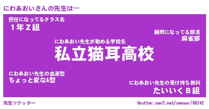| ファンタジー風あだ名 | 『ニワフェル』『エターナルニワアオイー』 |