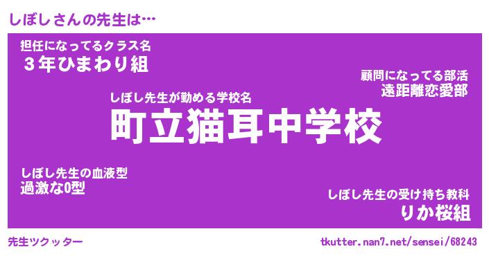 | ヒーロー風カッコイイあだ名 | 『スーパーシボシ』『ウルトラしぼしマン』 |