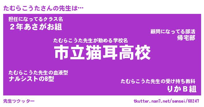 | ヒーロー風カッコイイあだ名 | 『スーパータムラコウタ』『暗黒騎士タム』 |