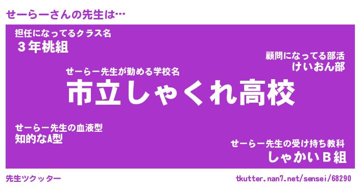 | 意味不明あだ名 | 『ペロリンせーらー』『永久保存せーらー』 |
