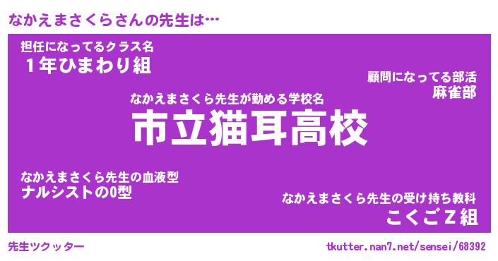 男性向けラノベタイトル風あだ名 | 『なかえまさくらの憂鬱』 |