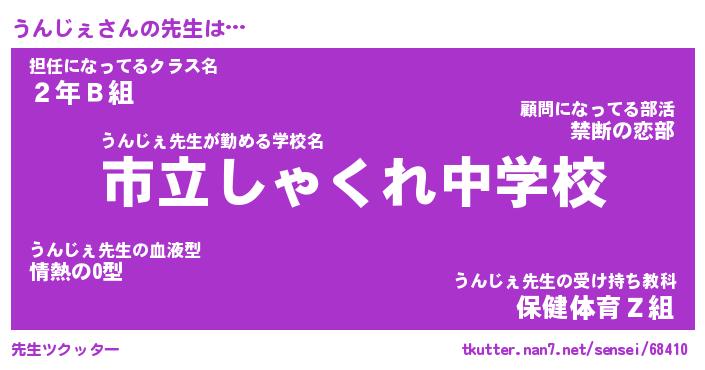 | 意味不明あだ名 | 『ペロリンうんじぇ』『永久保存うんじぇ』 |