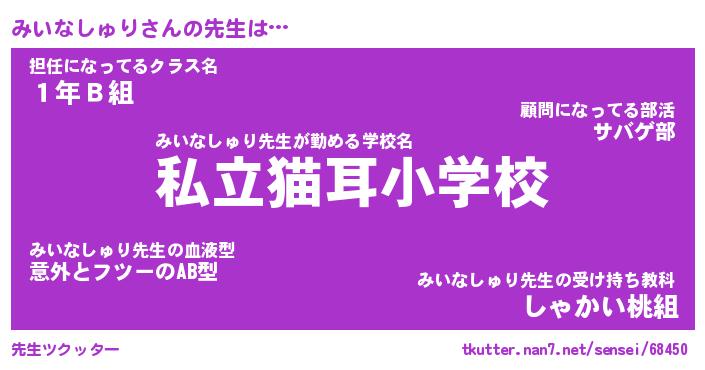 | 男性向けラノベタイトル風あだ名 | 『みいなしゅりの憂鬱』 |