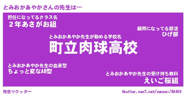 | 男性向けラノベタイトル風あだ名 | 『トミオカアヤカアートオンライン』 |