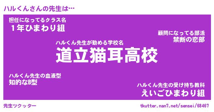 | 意味不明あだ名 | 『ペロリンハルくん』『永久保存ハルくん』 |