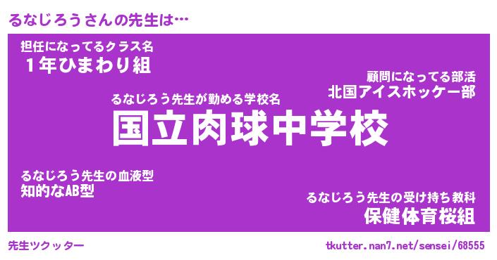 | 男性向けラノベタイトル風あだ名 | 『るなじろうの憂鬱』 |