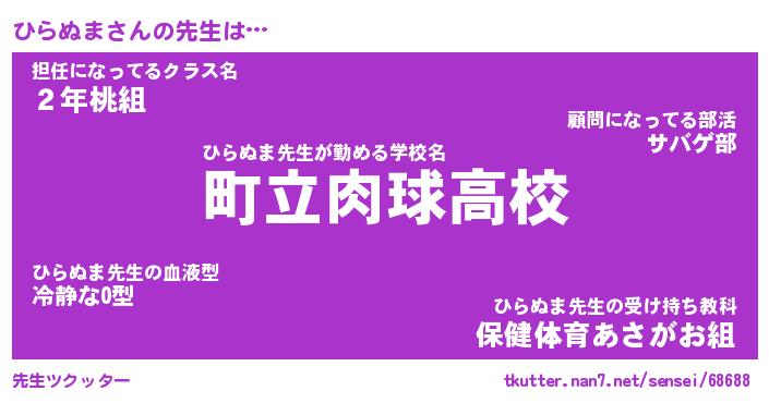 | 意味不明あだ名 | 『ペロリンひらぬま』『永久保存ひらぬま』 |
