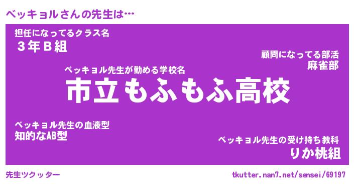 | ファンタジー風あだ名 | 『ベッフェル』『エターナルベッキョルー』 |