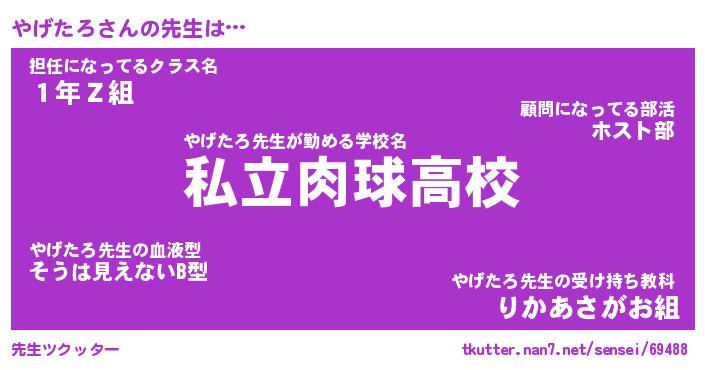 | 意味不明あだ名 | 『ペロリンやげたろ』『永久保存やげたろ』 |
