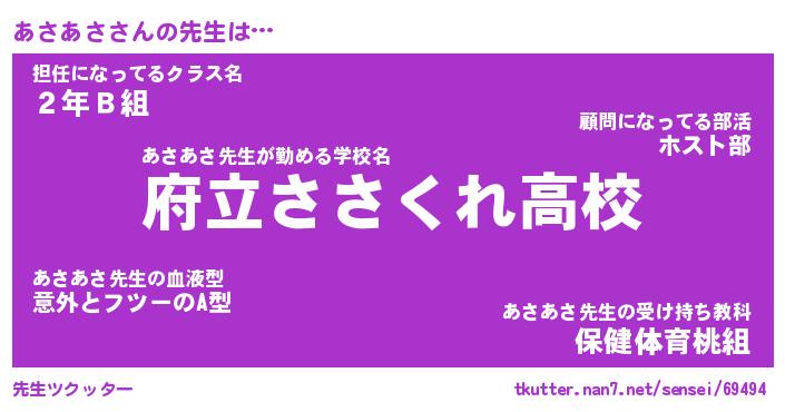| ポケモン風あだ名 | 『アサチュウ』『アサアダネ』 |