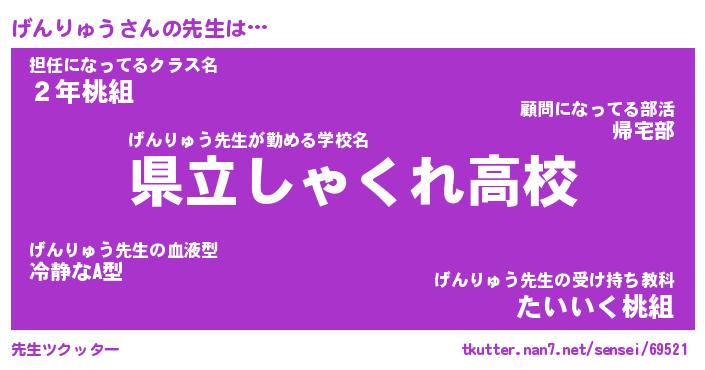 | ファンタジー風あだ名 | 『ゲンフェル』『エターナルゲンリュウー』 |