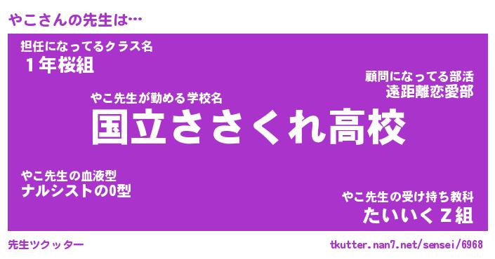 | 伝説のあだ名 | 『伝説のスナイパーやこ』 |