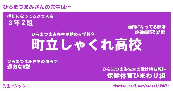 | ヒーロー風カッコイイあだ名 | 『スーパーヒラマツマミ』『幻影騎士ヒラ』 |