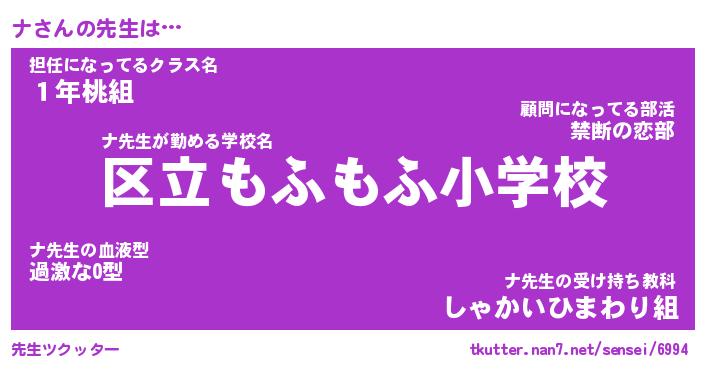 | ヘコむあだ名 | 『ナにゅー』『なまこ酢』『ナ太郎』 |