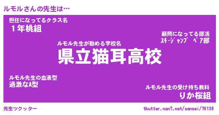 | ファンタジー風あだ名 | 『ルモフェル』『エターナルルモルー』 |
