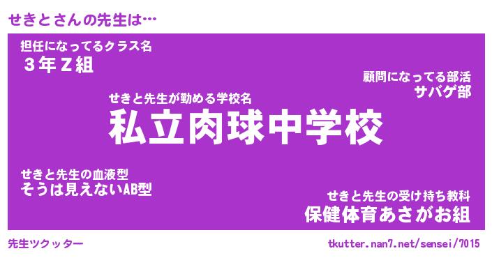 | ヒーロー風カッコイイあだ名 | 『スーパーセキト』『ウルトラせきとマン』 |