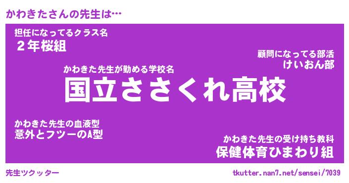 | 意味不明あだ名 | 『ペロリンかわきた』『永久保存かわきた』 |