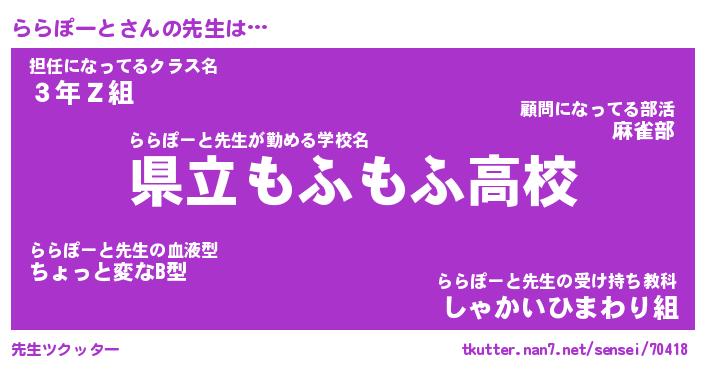 | ヘコむあだ名 | 『ららにゅー』『なまこ酢』 |