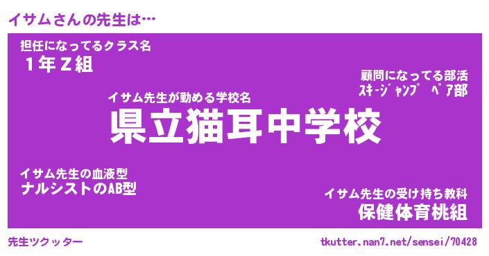 | ポケモン風あだ名 | 『イサチュウ』『イサムダネ』 |