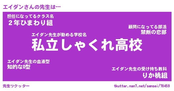 | 意味不明あだ名 | 『ペロリンエイダン』『永久保存エイダン』 |