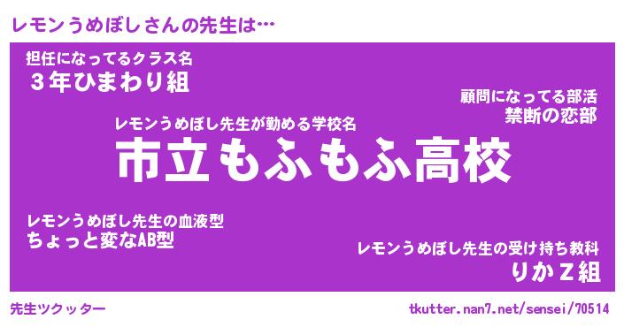 | 意味不明あだ名 | 『ペロリンレモンうめぼし』 |
