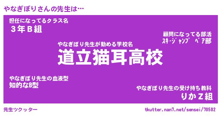 | ファンタジー風あだ名 | 『ヤナフェル』『エターナルヤナギボリー』 |
