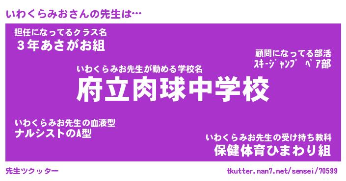| 胡散臭い通販商品みたいなあだ名 | 『億万長者になれるブレスレット…その名も「いわくらみお」』 |