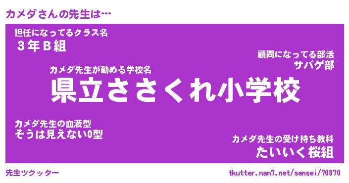 | ファンタジー風あだ名 | 『カメフェル』『エターナルカメダー』 |