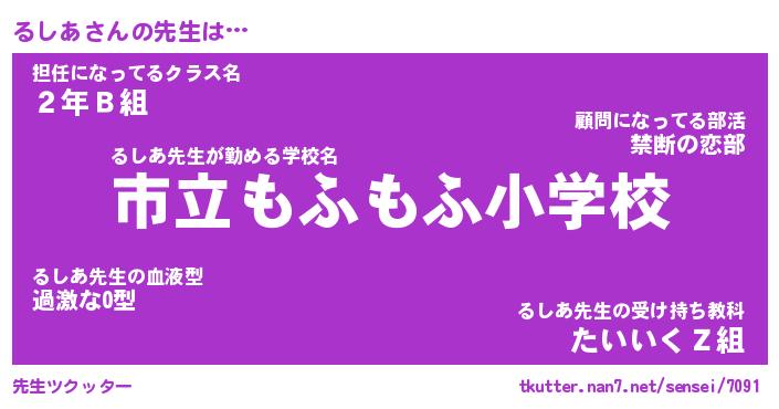 | ヘコむあだ名 | 『るしにゅー』『豆乳』『るしを』 |