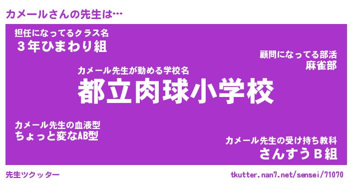 | ファンタジー風あだ名 | 『カメフェル』『エターナルカメールー』 |
