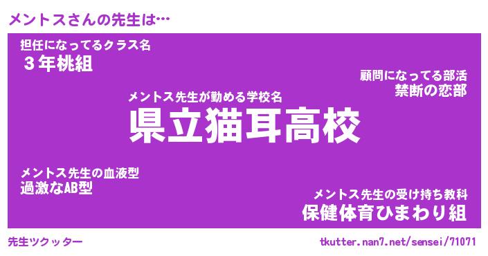 | ファンタジー風あだ名 | 『メンフェル』『エターナルメントスー』 |
