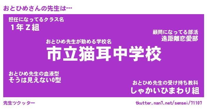 | ヘコむあだ名 | 『おとにー』『つくし』『おと太郎』 |