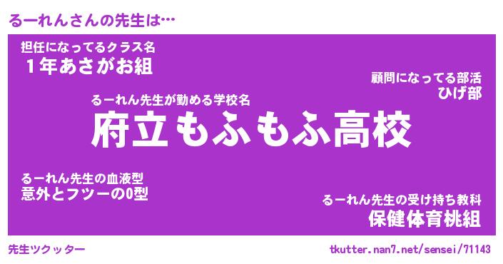 | 意味不明あだ名 | 『ペロリンるーれん』『永久保存るーれん』 |